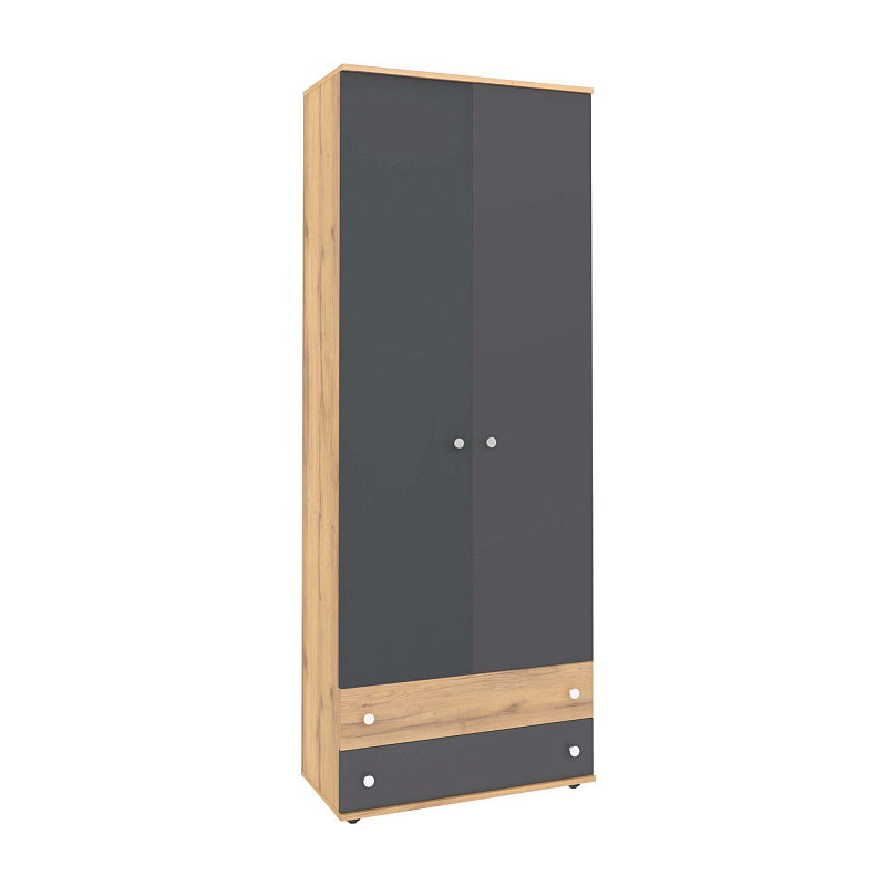 Шкаф из коллекции «Лойс» - практичное и функциональное решение для организации хранения в детской. Наполнение шкафа продумано для мелочей. Выдвижная штанга подойдет для размещения одежды на плечиках, комплект полок - для одежды в сложенном виде. В ящиках хватит места для гранения белья и других личных вещей ребенка. Кроме того, Вы имеете возможность выбрать цвет фасада шкафа: две белые дверцы, две в цвете "графит" или их комбинацию.