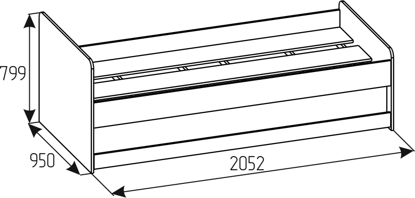 Рекомендуемый размер матраса для основного спального места - 2000х900 мм, для дополнительного спального места - 1900х800х180 мм. Дно спального места кровати из ЛДСП усилено специальными ребрами жесткости из фанеры 18 мм и рассчитано на нагрузку до 80 кг.Внимание! Матрас приобретается отдельно!