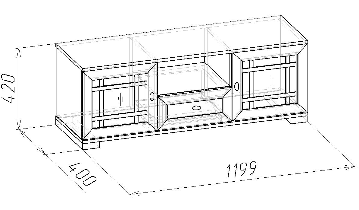 Неглубокая ТВ Тумба в классическом стиле позволит аккуратно разместить в гостиной всю видео и аудио аппаратуру. Центральная ниша шириной 370 мм. Выдвижной ящик (глубиной 350 мм, высотой 120 мм и шириной 365 мм) на шариковых направляющих можно не устанавливать, чтобы увеличить размер ниши в высоту. Если нужно поднять телевизор повыше, используйте дополнительный модуль - Шерлок 17 Подставка.