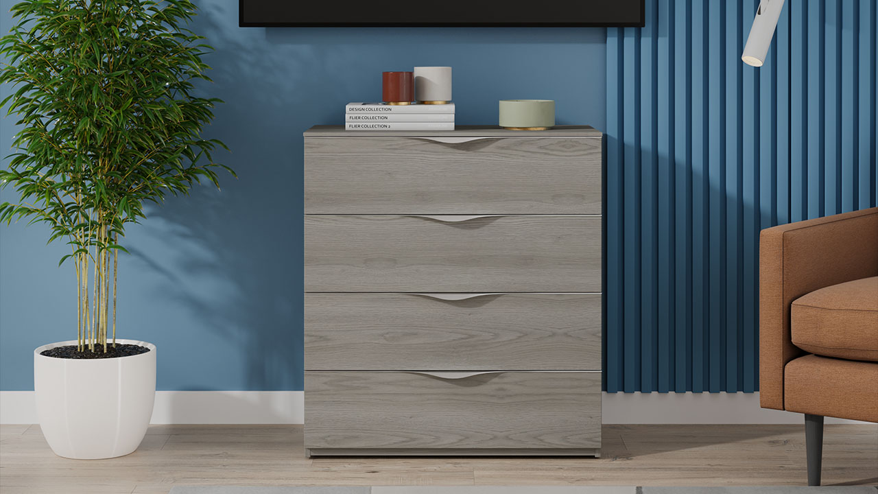 Комод из коллекции "Либерти" имеет 4 вместительных ящика с оригинальными металлическими ручками.