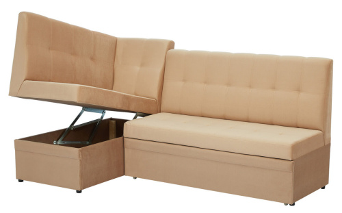 Кухонный угол, за счет выкатного элемента и мех-ма трансформации – «Дельфин» на металлокаркасе, имеет спальное место. Оттоманка дивана откидная и имеет короб для хранения.