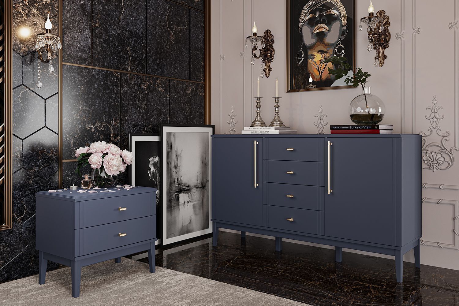 Магазин мебели «100Диванов» предлагает купить ДЖАЛИ Комод 4 ящика (лак темный лазурный) в Екатеринбурге по выгодным ценам от производителя с доставкой.