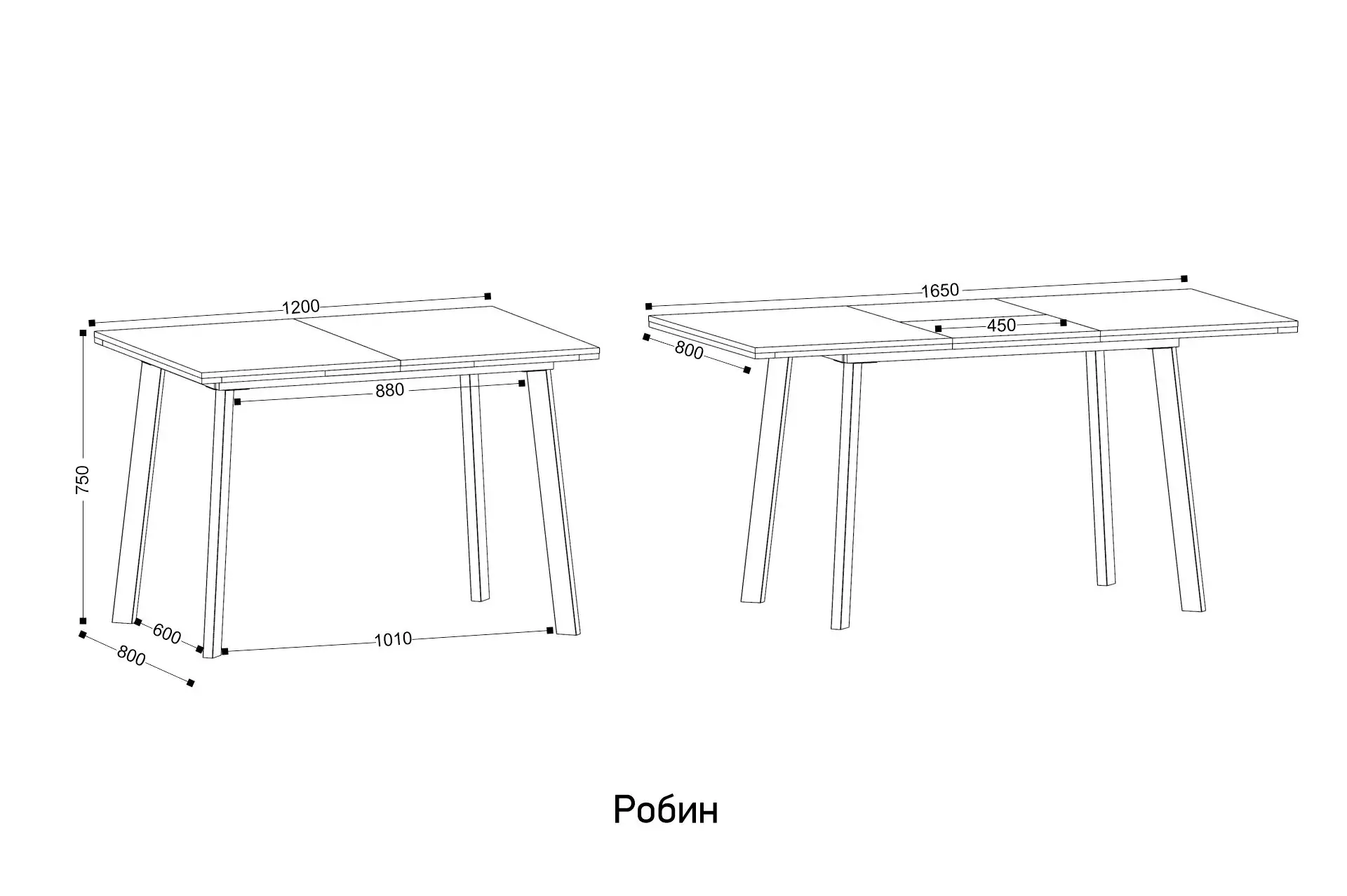 Ширина: 1200-1650 мм | Глубина: 800 мм | Высота: 750 мм
