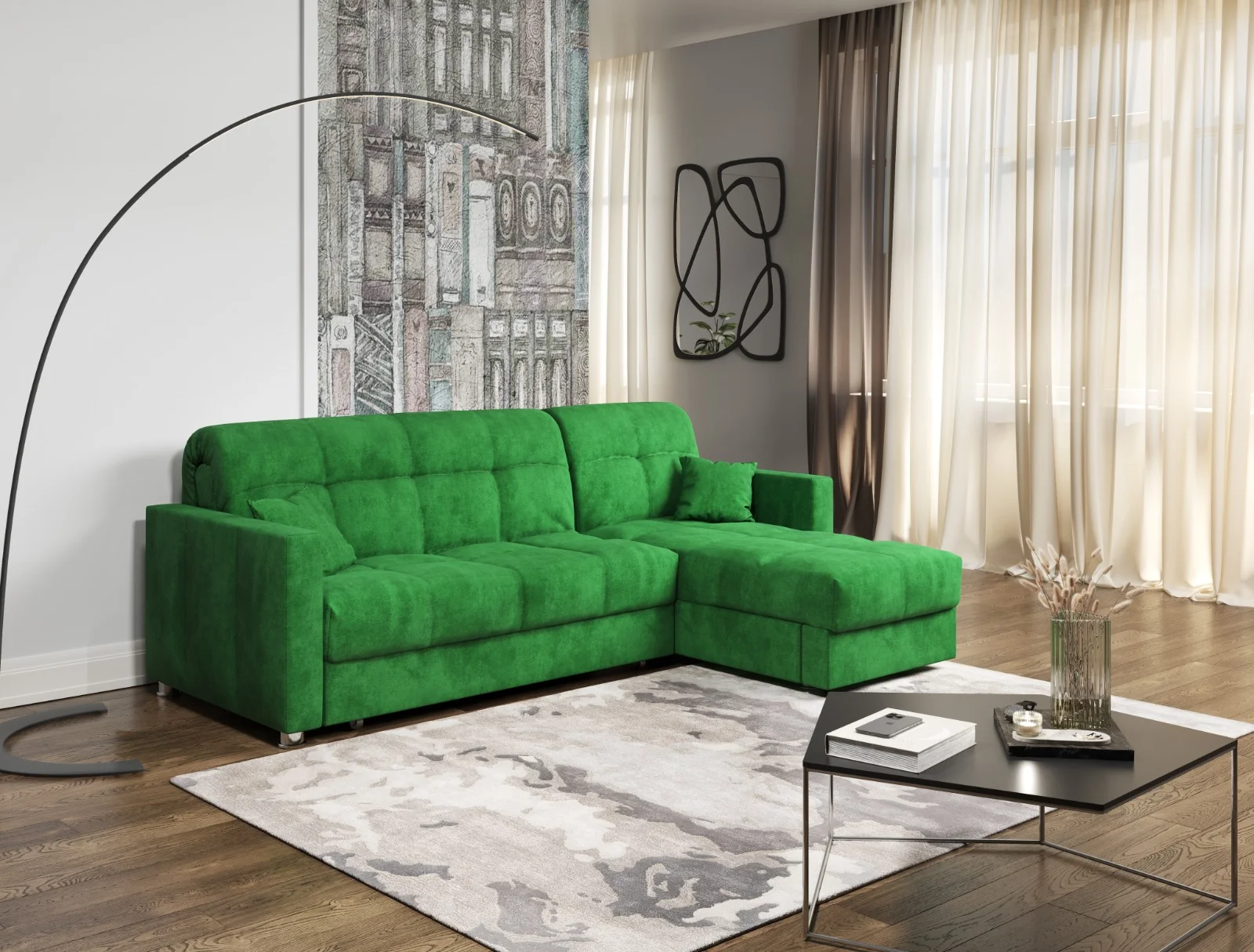 Большой и мягкий, он создаст уютную атмосферу в вашем доме и станет местом отдыха для всей семьи. Этот современный диван-кровать может использоваться как спальный диван и двуспальная кровать, что делает его идеальным для гостей или для небольших квартир.