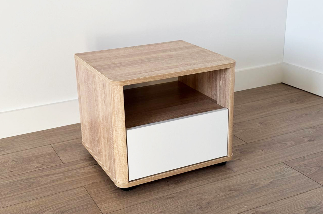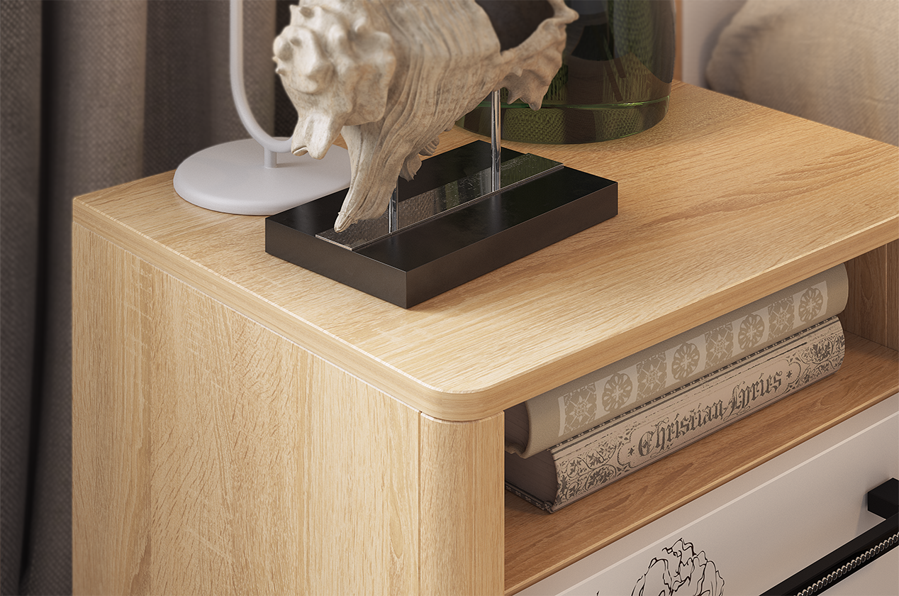 Прикроватная тумба Зара - это отличное дополнение к любой спальне. Ее аккуратный дизайн включает в себя выдвижной ящик и открытую нишу для удобного хранения ваших личных вещей. Особое внимание уделено безопасности: углы тумбы аккуратно скруглены, исключая острые выступы, что делает ее идеальным решением для спальни.