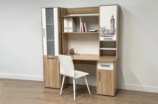 Состоит из вместительных полок под книги и ниш для оргтехники.