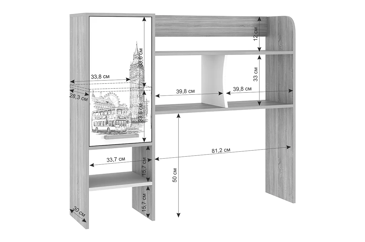 Надстройка для компьютерного стола «Лайт-1» – функциональное и универсальное дополнение к прямому и угловому компьютерным столам «Лайт-1» и «Лайт-2». Вместительные полки предназначены для книг, учебников и папок, более того, на них можно разместить сканер или принтер. Фасад закрытой ниши с полками с принтерным рисунком.