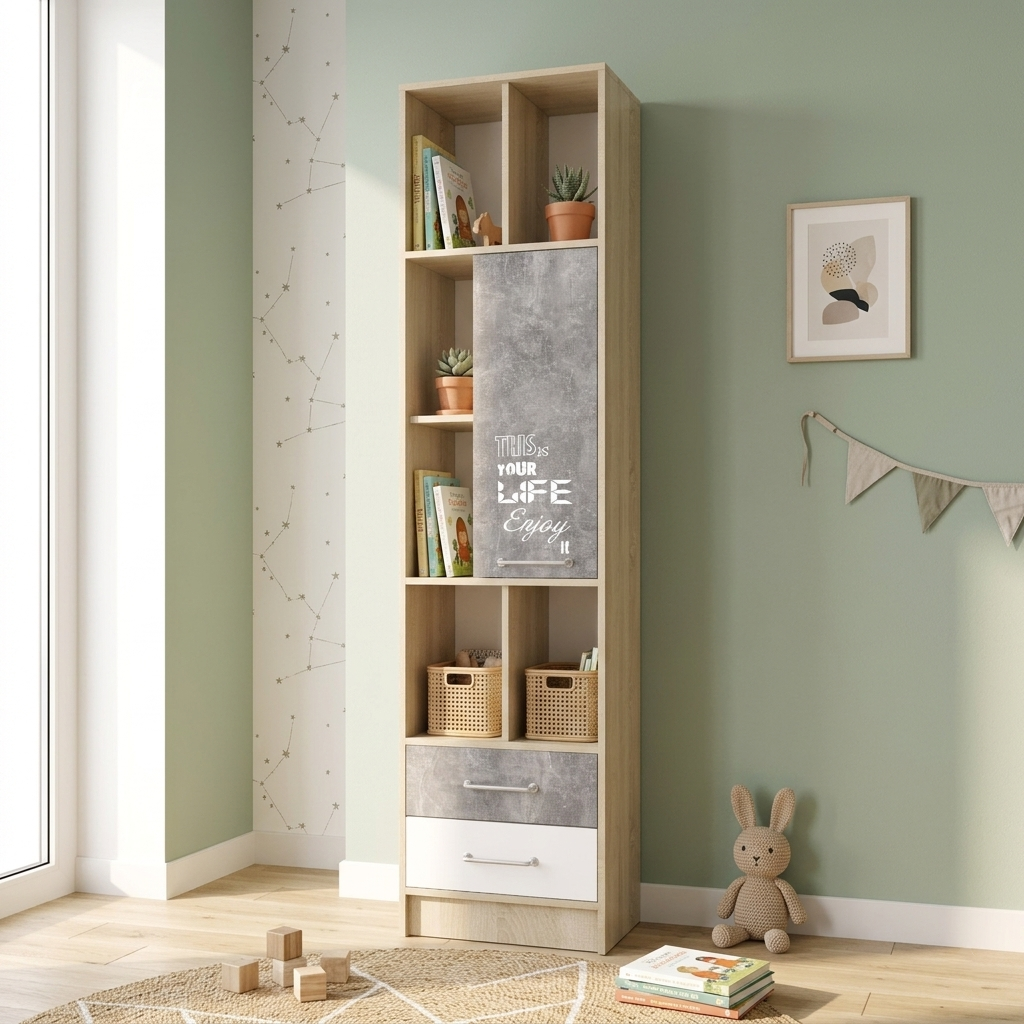 • Пенал малый КОЛИБРИ // дуб крафт серый, графит серый/камень серый - Ш 950 х В 1465 х Г 320 мм